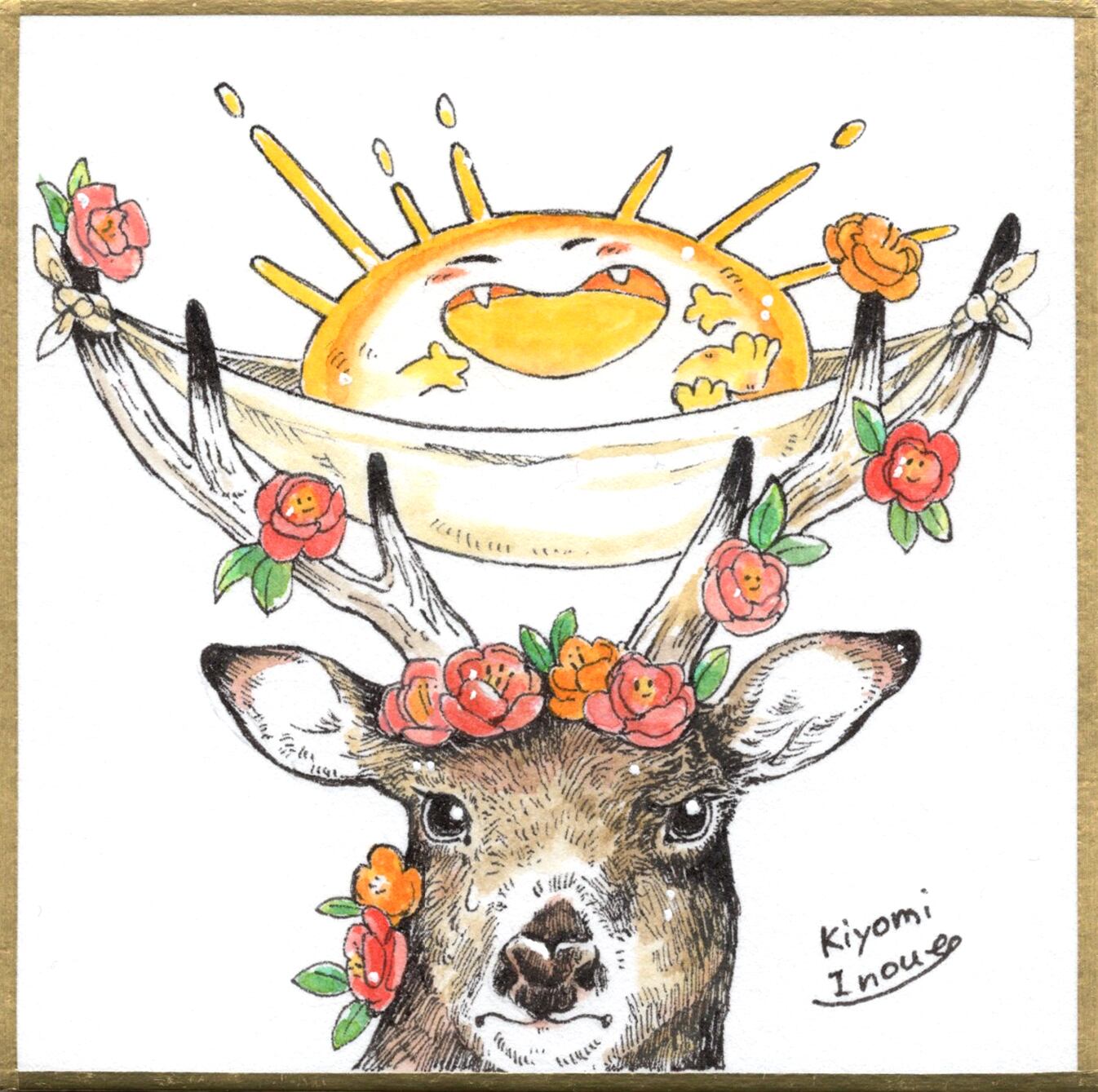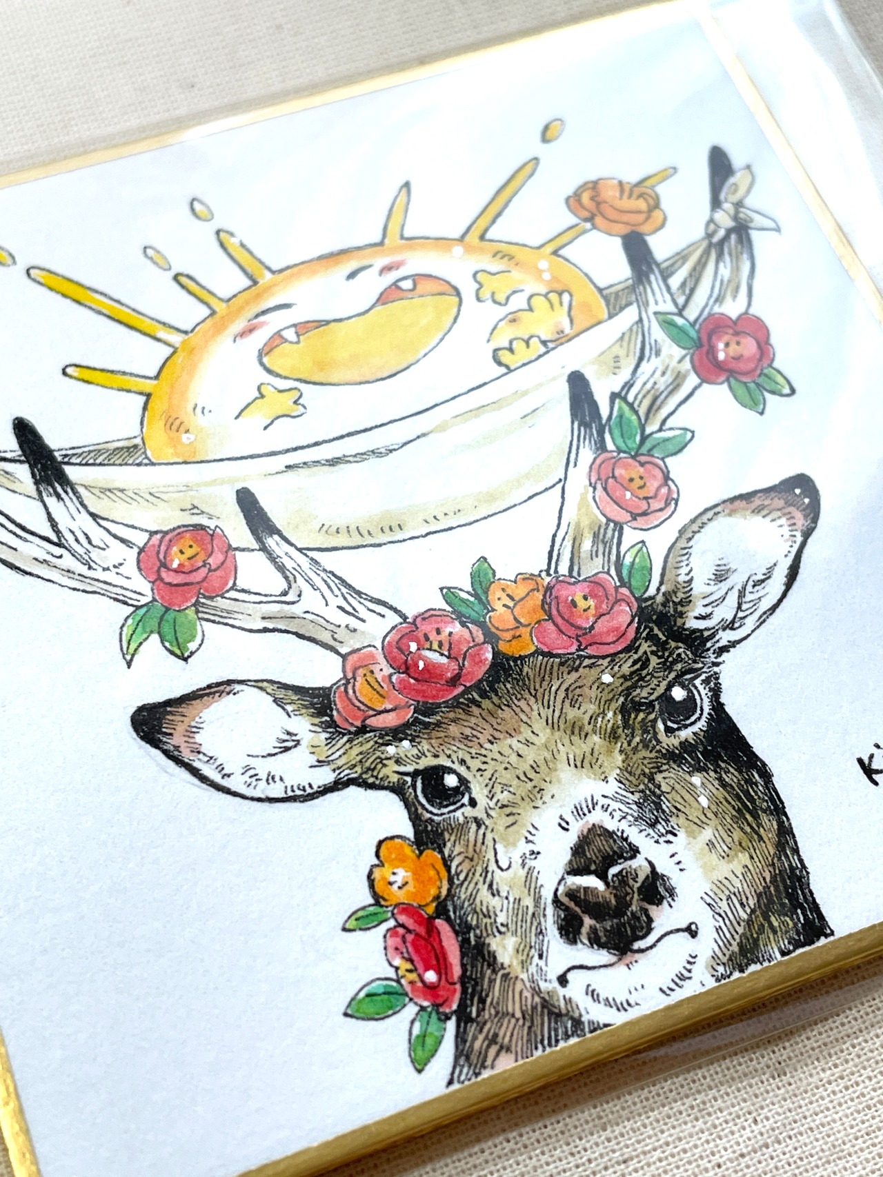 【ミニ原画】ミニ色紙サイズ『鹿で勝手にくつろぐ星ちゃん』